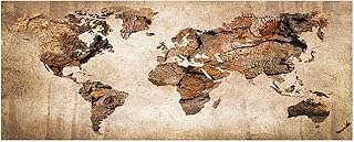Tulup Impression sur verre 125x50 cm Image Tableau Photo décorative panoramique pour la cuisine et le salon - Cartes et drapeaux - Carte Du Monde En Bois - Brun