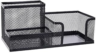 Deli Organiseur de bureau en maille avec porte-crayons et paniers de rangement pour accessoires de bureau, 3 compartiments, noir