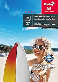 KOALA Papier photo jet d'encre brillant, A5 148x210mm 250 g/m² 100 feuilles, avec revêtement en résine avancée haute brillance de qualité supérieure, pour imprimante à jet d'encre Canon Hp Epson