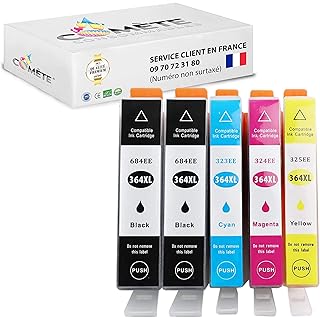 COMETE Cartouches d'encre Premium Compatibles avec HP 364 XL 364XL pour Imprimante Photosmart et Office Jet - Noir Cyan Magenta Jaune