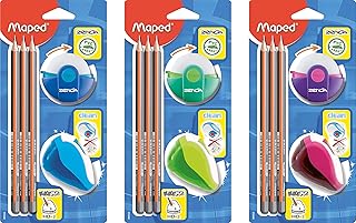 Maped 899926 Kit de démarrage pour étudiant 3 crayons Black'PEPS, gomme ZENOA, 1 taille-crayon Clean, rose, couleurs aléatoires, bleu, vert, rose