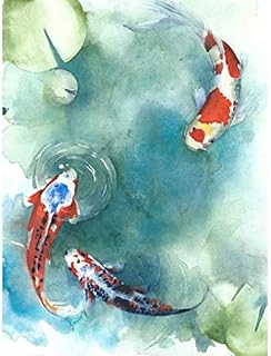 Wee Blue Coo Japanese Koi Fish with Lilies Art Print Canvas Premium Wall Decor Poster Japonais Poisson Mur Déco Affiche