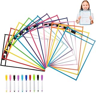 10Pcs Effaçables à Sec Poches,Pochettes Effaçables à Sec Réutilisables et 10Pcs Stylos Effaçables,Sac de Classement Effaçable à Sec pour Fournitures de Bureau et D'enseignement