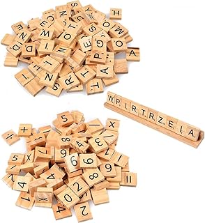 WOWOSS 201Pcs Lettres et Chiffres en Bois Brut, Alphabets Majuscules A à Z et Chiffre 2 x 1,8 cm pour Jeux d'enfants (avec Un Support de Bois)