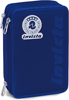 Trousse Scolaire 3 Compartiments Invicta , BENIN , Bleu , Avec contenu: crayons, stylos... !
