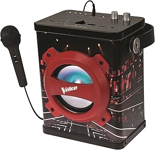 Lexibook The Voice La Plus Belle Voix Enceinte Bluetooth Portable avec Micro, lumières et poignée, 10 Watts, Ports AUX-in, USB et Micro SD, Batterie Rechargeable, Noir/Rouge, K920TV