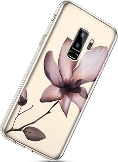 Herbests Compatible avec Samsung Galaxy S9 Plus Coque Transparent avec Motif Ultra Mince Housse Silicone Etui Housse de Protection Crystal Clear TPU Gel Bumper Case Cover,Magnolia