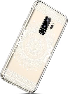 Herbests Compatible avec Samsung Galaxy S9 Plus Coque Transparent avec Motif Ultra Mince Housse Silicone Etui Housse de Protection Crystal Clear TPU Gel Bumper Case Cover,Mandala Blanc