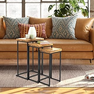 VASAGLE Lot de 2 Tables d’appoint, Tables gigognes, Tables basses, pour salon, salle à manger, chambre, style industriel, Marron Rustique et Noir LNT012B01