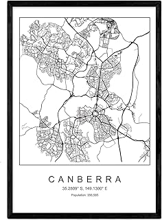 Nacnic Imprimer Plan de la Ville de Canberra Style scandinave en Noir et Blanc. Affiche de Format A3 Papier imprimé No 250 GR. Peintures, estampes et Affiches pour Le Salon et Chambre à Coucher