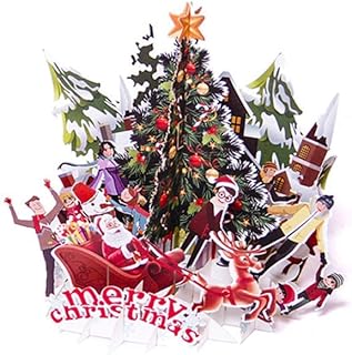 Aruie 3D Carte de Vœux en Papier Imprimé Plié Arbre de Noël Père Noël Cerf Famille Fête Bénédiction Carte Cadeau