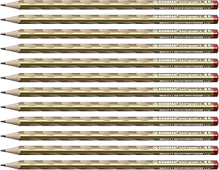 STABILO EASYgraph S Metallic Edition Lot de 2 crayons à papier triangulaires fins pour droitiers – Dureté HB