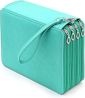 SUMNACON 160 PU Cuir Trousse carré de Crayon , Sac Carré de Crayon Couleur ou Aquarelle pour Dessinateur Professionnelle ou Amateur, Pas de Crayon (Turquoise,Pas de Stylo)