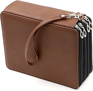 Sumnacon 160 PU cuir Trousse carré de crayon, Sac Carré de crayon couleur ou aquarelle pour Dessinateur Professionnelle ou Amateur, pas de crayon (Brun, pas de stylo)