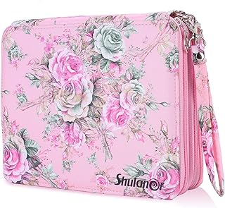 Shulaner 250 Slots Trousse à crayons de couleur avec fente pour crayons stylos à gel avec 5 fermeture éclair sac organisateur Grande capacité en Oxford pencil case - Roses Roses